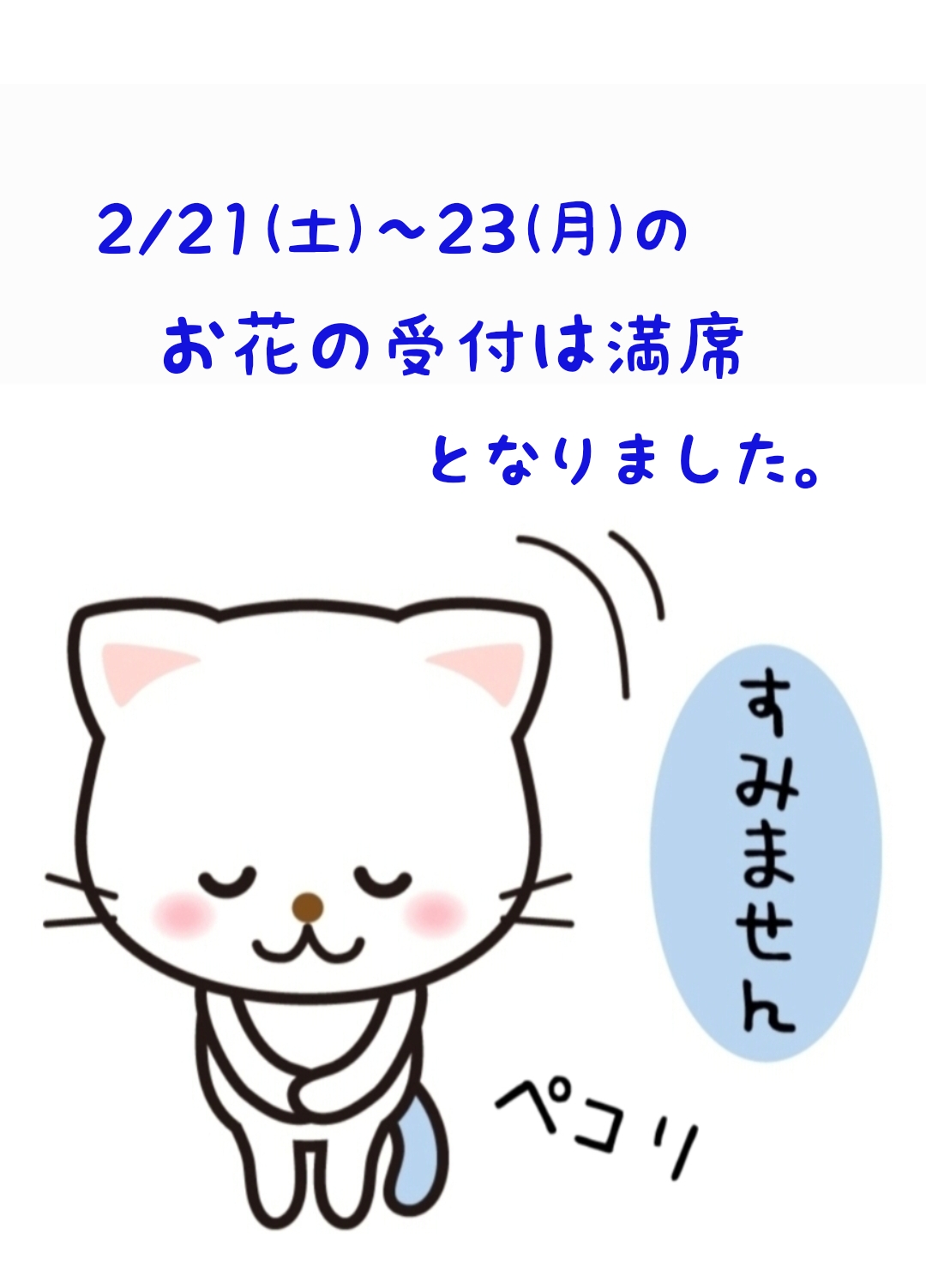 2/21(土)〜23(月)、今現在ご予約されているお客様で満席となりましたので受付をストップさせていただきます🙇
